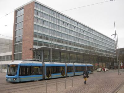 Straße der Nationen 2, 4, Hauptwerk der Architektur der 1960er Jahre in Chemnitz mit rhythmisch gestalteter Curtain-wall-Fassade, anspruchsvolle Innengestaltung im Erdgeschoss, im Stil der Moderne, baugeschichtlich und städtebaulich von Bedeutung