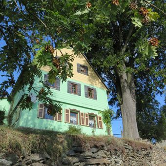 Am Schindlerberg 5 Chemnitz-Harthau, Kleines ländliches Wohnhaus mit unter Verkleidung erhaltener Fachwerkkonstruktion im Obergeschoss in landschaftsprägender Lage