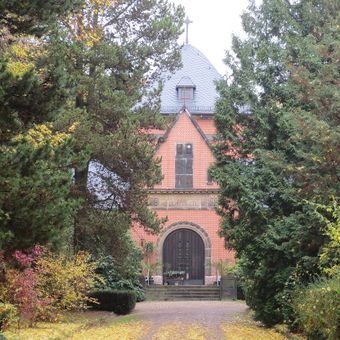 St.-Michaelis-Friedhof Altchemnitz, Bemerkenswerte, axial organisierte und gartenartig gestaltete Friedhofsanlage, beherrscht von dem im Zentrum sich erhebenden Kapellenbau Einzeldenkmale der Sachgesamtheit St.-Michaelis-Friedhof Altchemnitz (siehe Sachgesamtheitsliste – Obj. 093025