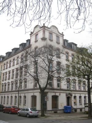 Mietshaus in geschlossener Bebauung in Ecklage mit Vorgarten Klarastraße 44