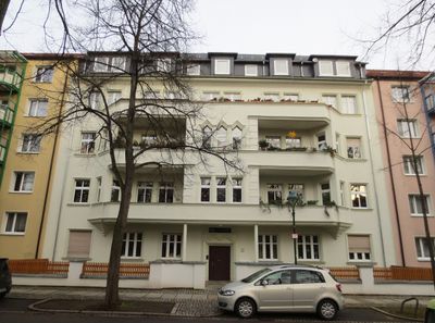 Mietshaus in geschlossener Bebauung in Ecklage, mit Vorgarten zur Uhlichstraße Kanzlerstraße 60