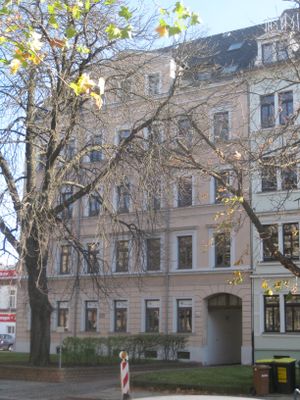 Mietshaus in geschlossener Bebauung konzipiert, mit Vorgarten August-Bebel-Straße 6