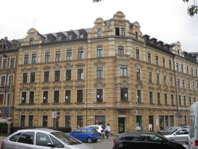 Mietshaus in geschlossener Bebauung in Ecklage mit Vorgarten Straße der Nationen 65