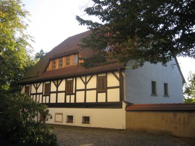 Kirchberg 3, Chemnitz-Glösa-Draisdorf, Stattliches Wohnhaus mit teilweise sichtbarem Fachwerk, Verblattungen der Kopfstreben, insgesamt hervorragender Erhaltungszustand, das Haus bildet zusammen mit Kirche (Kirchberg 4), Kirchhofsmauer und Kirchhof sowie Pfarrhaus (Kirchberg 2) ein außer