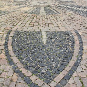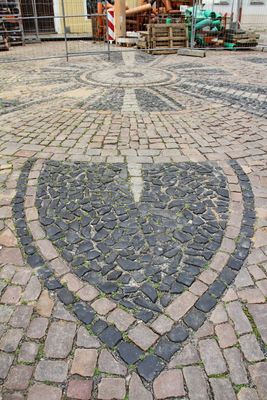 Straßenpflaster Heubnerstraße, Straßenpflaster; qualitätvolles Mosaikpflaster in Form einer stilisierten Blume, künstlerisch bedeutend, in dieser Form in Freiberg und darüber hinaus selten (Singularität)