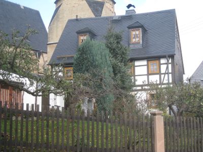 Mittweidaer Straße 71, Chemnitz-Ebersdorf, Einfacher, original erhaltener ländlicher Wohnbau, Fachwerk im Obergeschoss, prägnante Lage unterhalb der Stiftskirche