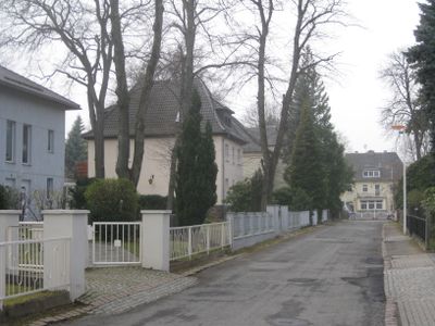 Sachgesamtheit Siedlung am Flughafen, Einheitlich gestaltete Villenkolonie mit traditionalistischer Wohnbebauung im weitestgehend originalen Zustand, Architekt: Alwin Marquardt, baugeschichtlich und ortsgeschichtlich von Bedeutung; Sachgesamtheit mit ingesamt 11 Wohngebäuden und Gärten
