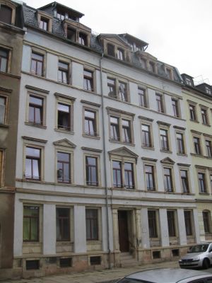 Mietshaus in geschlossener Bebauung in Ecklage, mit Vorgarten Dresdner Straße 74