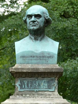 Wernerdenkmal Wallstraße, Einzeldenkmal der Sachgesamtheit Promenadenring: Denkmal für Abraham Gottlob Werner (siehe auch Sachgesamtheitsliste - Obj. 09200740, Bebelplatz); Denkmal mit Büste, Postament, reichgestaltetem Sockel und quadratischem, massivem Fuß, für den bede
