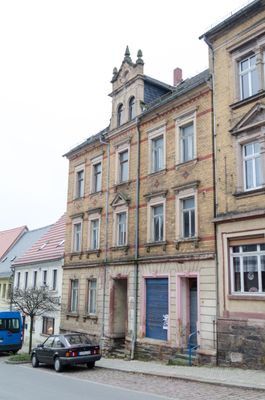 Mietshaus in geschlossener Bebauung Lange Straße 16, mit Laden, Klinkerfassade, baugeschichtlicher Wert als original erhaltenes Mietshaus, zugleich dokumentiert dies die städtebauliche Entwicklung der Zeit um 1900 in Oederan Denkmaltext 1897 für den Webermeister Bernhard Fiedler erbaut. Dreigeschossi