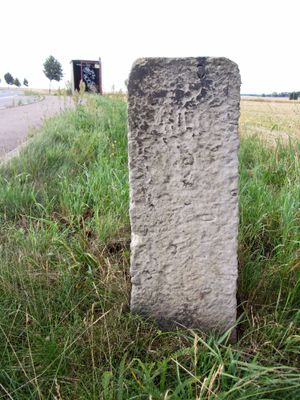 Wegestein Großböhla, Sandsteinstele mit Inschrift, Wegweiser von verkehrsgeschichtlicher Bedeutung