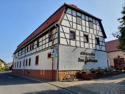 Göschen-Gut, Wohnstallhaus und Scheune eines Bauernhofes, sowie Einfriedungsmauer des Hofes Schillerstraße 27