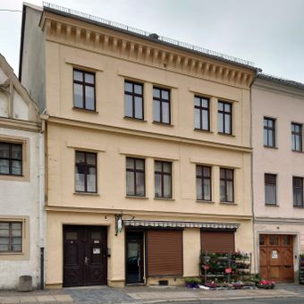 Leipziger Straße 30, gate, basement and house in Torgau in Germany