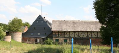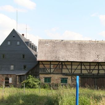 Vierseithof mit Wohnstallhaus, Scheune, ehemaligem Schafstall, Blockspeicher, Seitengebäude und Hofpflasterung Zum Vierseithof 16, house in Glauchau, Germany