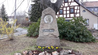 Schiller monument Steinpleis, cultural heritage monument in Saxony, memorial stone in Steinpleis, Germany