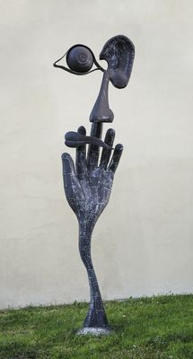 La scultura rappresenta la percezione sensoriale umana attraverso forme metalliche, riflettendo l'interesse di Kristek per l'interazione delle persone con l'ambiente circostante.