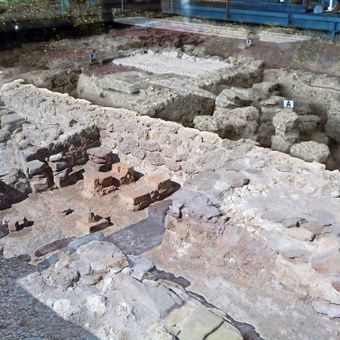 Le fondamenta scavate di questa proprietà romana rivelano una disposizione con diverse stanze e caratteristiche architettoniche tipiche della costruzione romana provinciale.