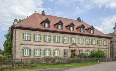 Il palazzo in pietra sorge in Lauterbachstraße 10, presentando elementi architettonici tedeschi tradizionali con una facciata simmetrica.