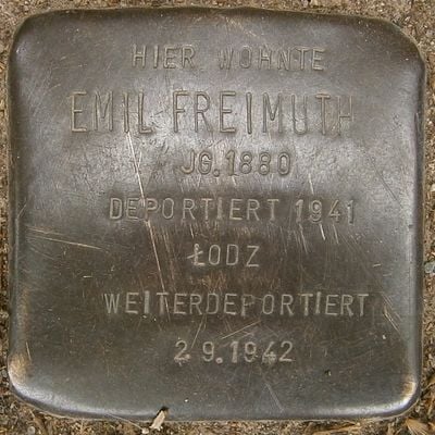 Stolperstein dedicated to Emil Freimuth, Stolperstein in Hamburg-Harvestehude