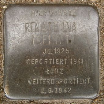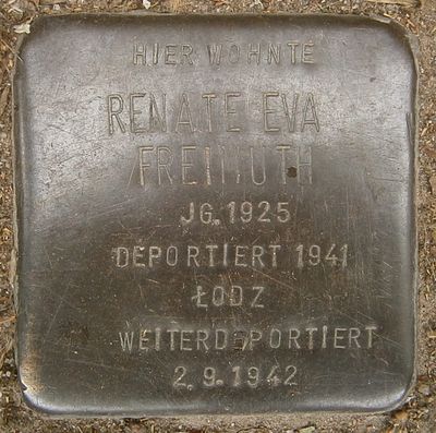 Stolperstein dedicated to Renate Eva Freimuth, Stolperstein in Hamburg-Harvestehude (Isestraße 43)