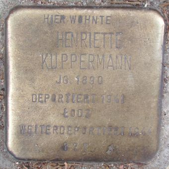 Stolperstein dedicated to Henriette Kuppermann, Stolperstein in Hamburg-Harvestehude