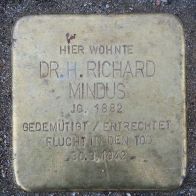 Stolperstein dedicated to Richard Mindus, Stolperstein in Hamburg-Harvestehude