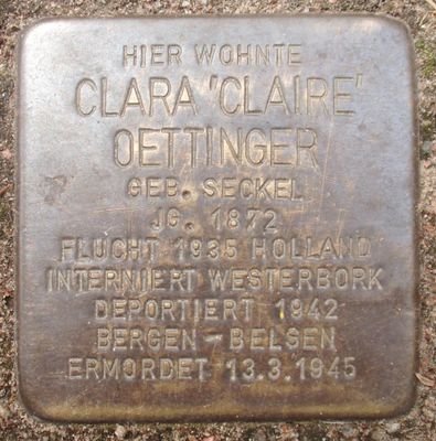 Stolperstein dedicated to Clara ‚Claire‘ Oettinger, Stolperstein in Hamburg-Harvestehude