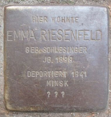 Stolperstein dedicated to Emma Riesenfeld, Stolperstein in Hamburg-Harvestehude