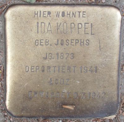 Stolperstein dedicated to Ida Koppel, Stolperstein in Hamburg-Harvestehude