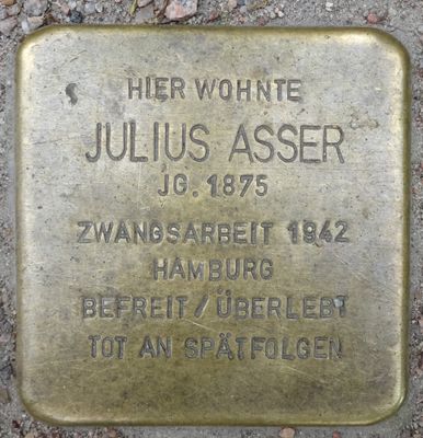 Stolperstein dedicated to Julius Asser, Stolperstein in Hamburg-Rotherbaum