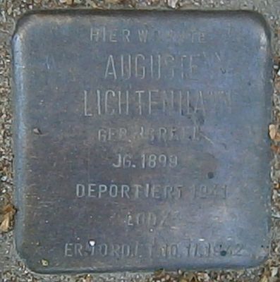 Stolperstein dedicated to Auguste Lichtenhayn, Stolperstein in Hamburg-Harvestehude
