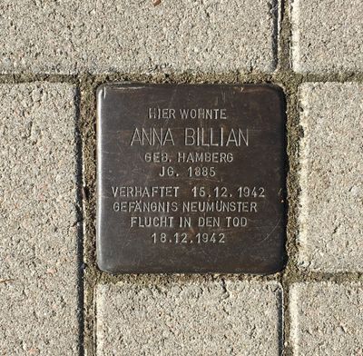 Stolperstein dedicated to Anna Billian, Stolperstein in Tornesch
