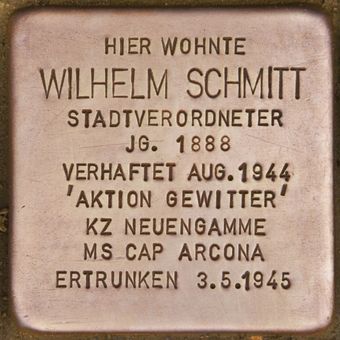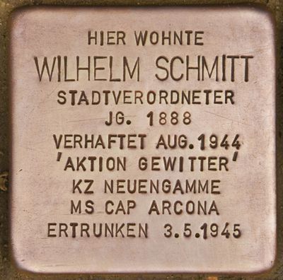 Stolperstein dedicated to Wilhelm Schmitt, Stolperstein in Pinneberg