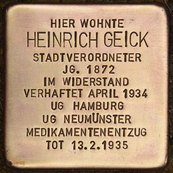 Stolperstein dedicated to Heinrich Geick, Stolperstein in Pinneberg