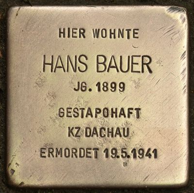 Stolperstein dedicated to Jacob Hans Bauer, Stolperstein in Reinbek