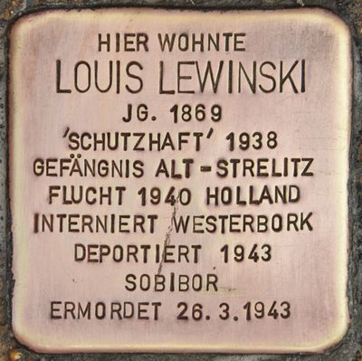 Stolperstein dedicated to Louis Lewinski, Stolperstein in Wismar