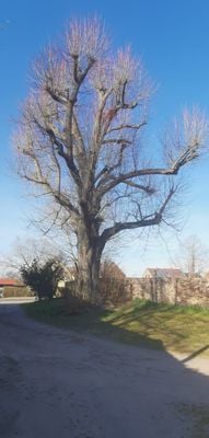 Naturdenkmal Stieleiche (Quercus robur) Zentrum des Friedhofs in Zinnitz