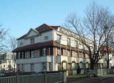 Villa Urvasi si estende lungo Lahmannring 17, caratterizzata da numerosi appartamenti con balconi e un design architettonico riformista del primo Novecento.