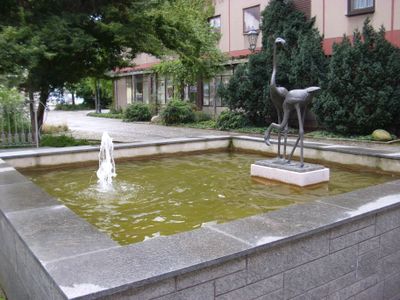 Flamingobrunnen, Springbrunnenensemble in Zwickau auf dem Neuberinplatz, nahe des Hauptmarkts