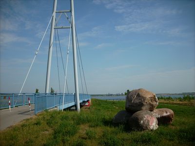 Gremmin Bridge, Cable-stayed bridge with fan system in Gräfenhainichen, Wittenberg (Kreis), Saxony-Anhalt, Germany; Gräfenhainichen, Wittenberg (Kreis), Saxony-Anhalt, Germany