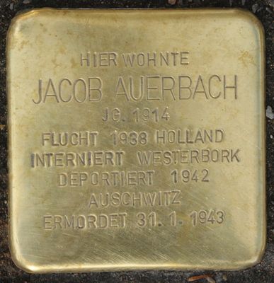 Stolperstein dedicated to Jacob Auerbach, Stolperstein in Hamburg-Harvestehude