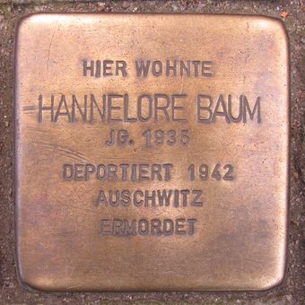 Stolperstein dedicated to Hannelore Baum, Stolperstein in Hamburg-Uhlenhorst