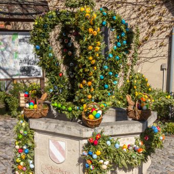 Easter fountains in Schönberg, Osterbrunnen im Landkreis Nürnberger Land in Bayern