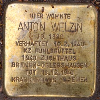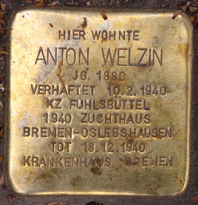 Stolperstein dedicated to Anton Welzin, Stolperstein in Hamburg-Rotherbaum