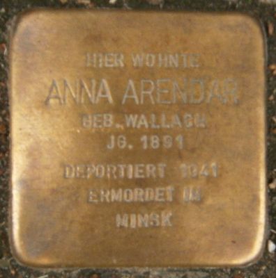 Stolperstein dedicated to Anna Arendar, Stolperstein in Hamburg-Rotherbaum