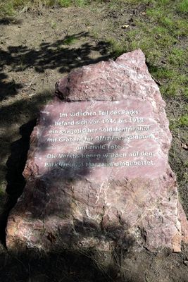 Memorial stone, memorial stone commemorating the Soviet military cemetery in the Schlosspark Biesdorf in Berlin, Germany