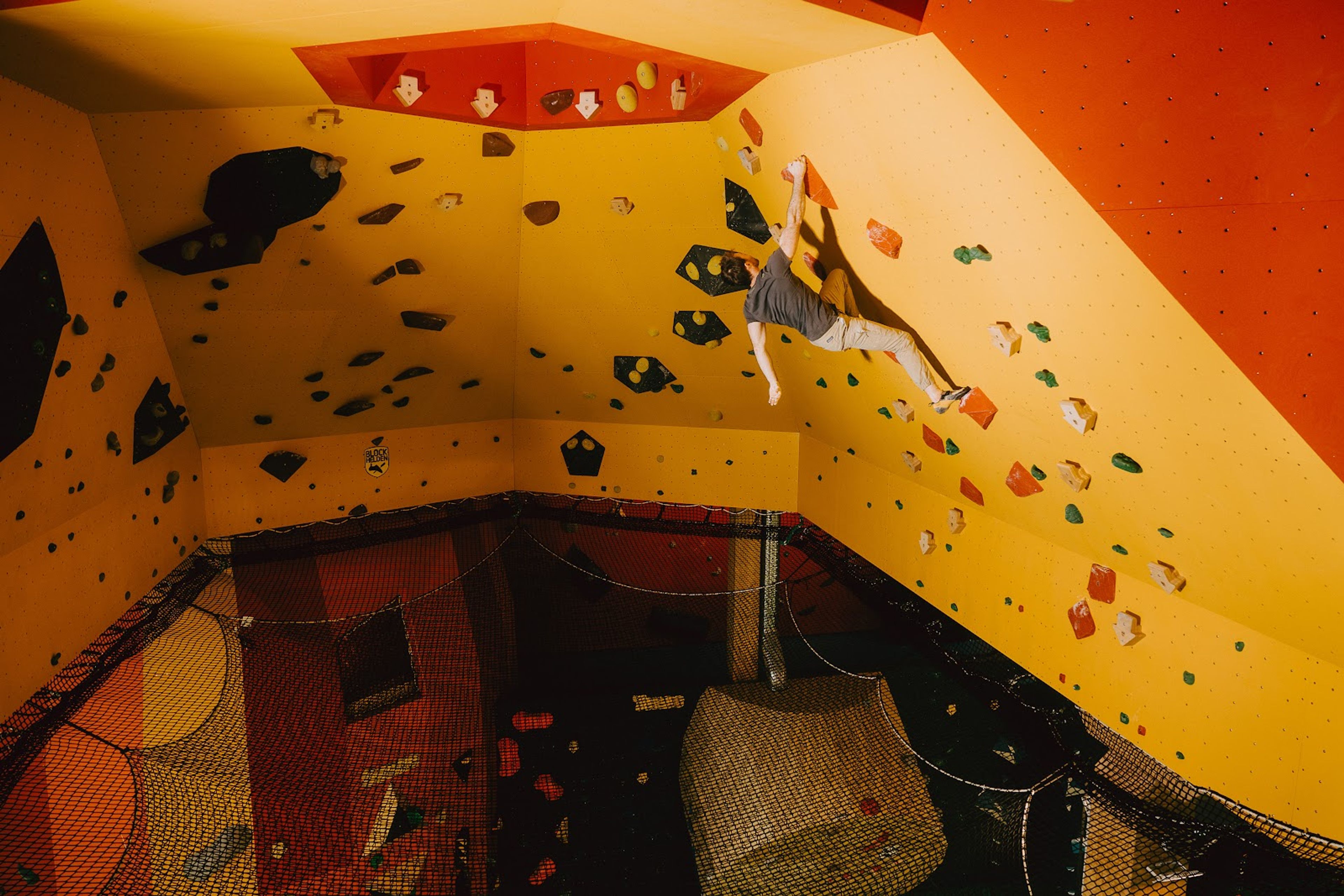 La palestra di arrampicata BLOCKHELDEN presenta numerose pareti con vie di diversi gradi, ospitando principianti ed esperti in uno spazio di 1000 metri quadrati.