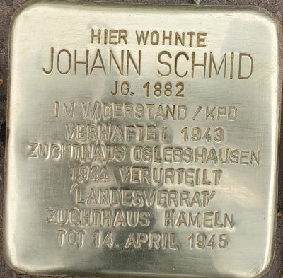 Stolperstein dedicated to Johann Schmid, Stolperstein in Bremen-Woltmershausen