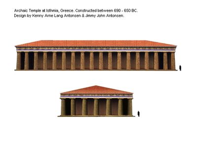 Il tempio misura 40 metri di lunghezza e 14 metri di larghezza sull'Istmo di Corinto, con colonne in pietra in stile architettonico dorico.