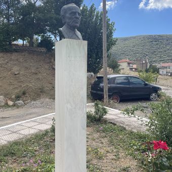 Bust of Nikiforos Vrettakos, Distomo, public sculpture in Greece by Georgios Kalakallas